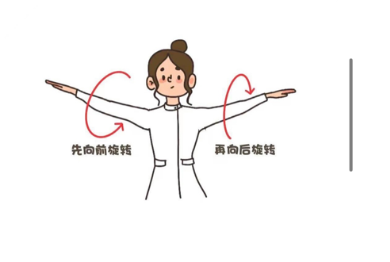 4.术后4-6天:取站立位,将双臂伸直做前伸和后伸运动,逐渐增加伸展的幅度,不超过肩关节水平位。