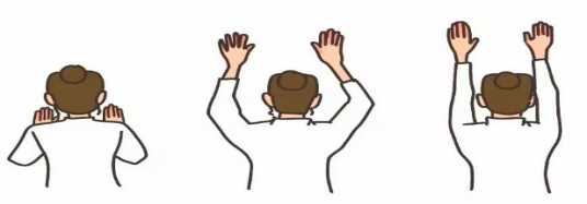 3.术后2-3天可行患肢外展运动:术肢往两侧伸展,回收再打开,重复以上动作,逐渐过渡到与肩关节持平。